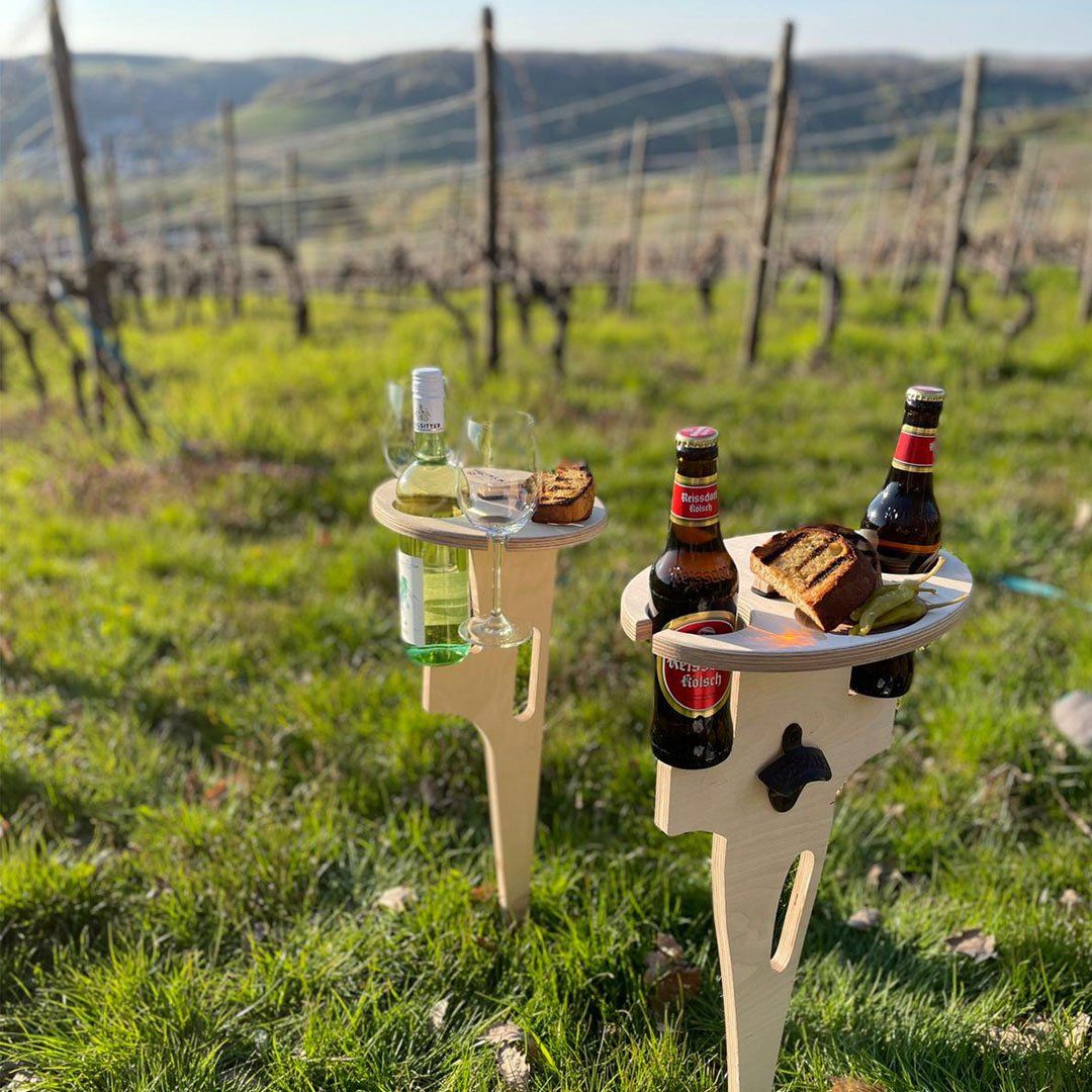 Er ist leicht, komfortabel und bietet viele praktische Funktionen… unser ROMANTIC-WINE-TABLE TO-GO, gerne auch als BOTTLE-TABLE TO-GO erhältlich.
